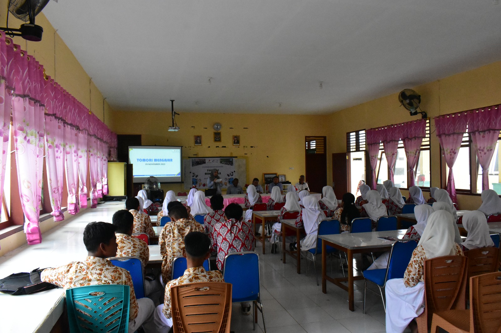 OBORMOTINDOK.CO.ID, BATUI- Facility Surveillance Superintendent, JOB Pertamina-Medco E & P Tomori Sulawesi, Khoirul Ardi Tyawarman bersama Production Operator Supervisor JOB Tomori, Eltanuri Altas Jara, tampil menjadi guru tamu di SMAN 1 Batui, Rabu (29/11/2023).