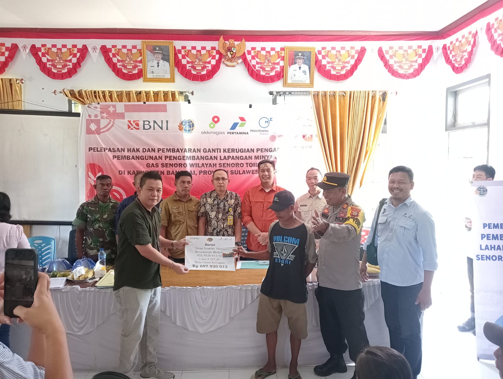 OBORMOTINDOK.CO.ID. Banggai– Sejumlah warga Kecamatan Toili, Kabupaten Banggai, menerima hak pembayaran ganti kerugian atas pengadaan tanah untuk proyek pengembangan Lapangan Minyak dan Gas (Migas) di wilayah Senoro Toili.