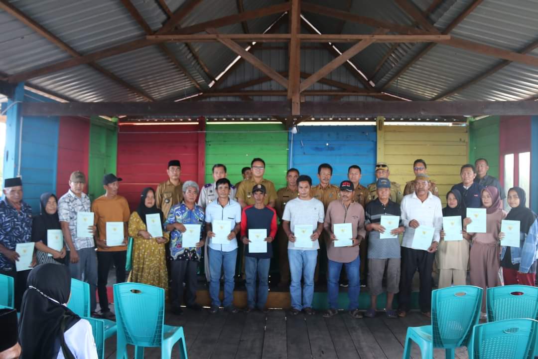 OBORMOTINDOK.CO.ID. MORUT- Bupati Morowali Utara Dr. dr. Delis Julkarson Hehi, MARS, menyerahkan Sertifikat Hak Atas Tanah Nelayan masyarakat Desa Ungkea, Bungintimbe dan Towara Pantai, Kecamatan Petasia Timur, Senin sore (26/06/2023).