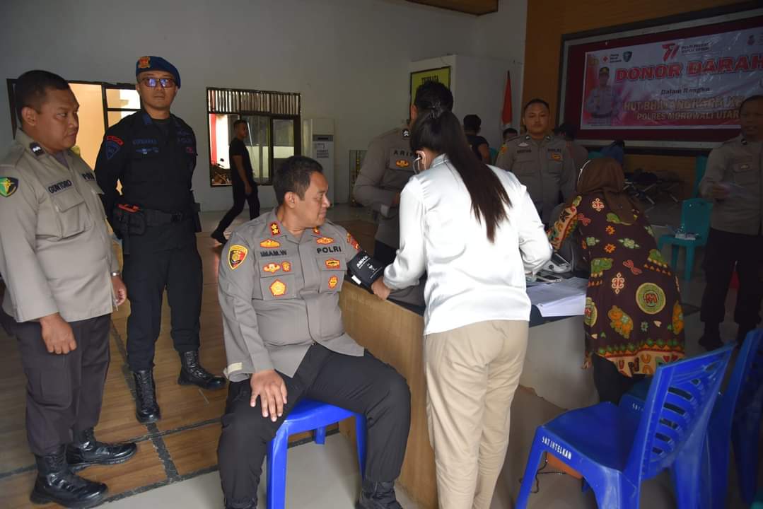 “Kegiatan donor darah ini dilaksanakan dalam rangka bakti kesehatan yang merupakan rangkaian dari acara memperingati hari ulang tahun Bhayangkara ke-77,” terang Kapolres Morowali Utara AKBP Imam Wijayanto.S.I.K., .M.H.