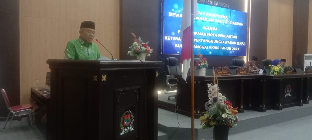 Wakil Bupati Banggai, Furqanuddin Masulili saat menyampaikan nota pengantar Laporan Keterangan Pertanggungjawaban (LKPj) Bupati Banggai akhir tahun anggaran 2023 di agenda rapat paripurna DPRD Banggai, Senin (1/4/2024) malam menguraikan pencapaian-pencapaian progresif Pemda Banggai.
