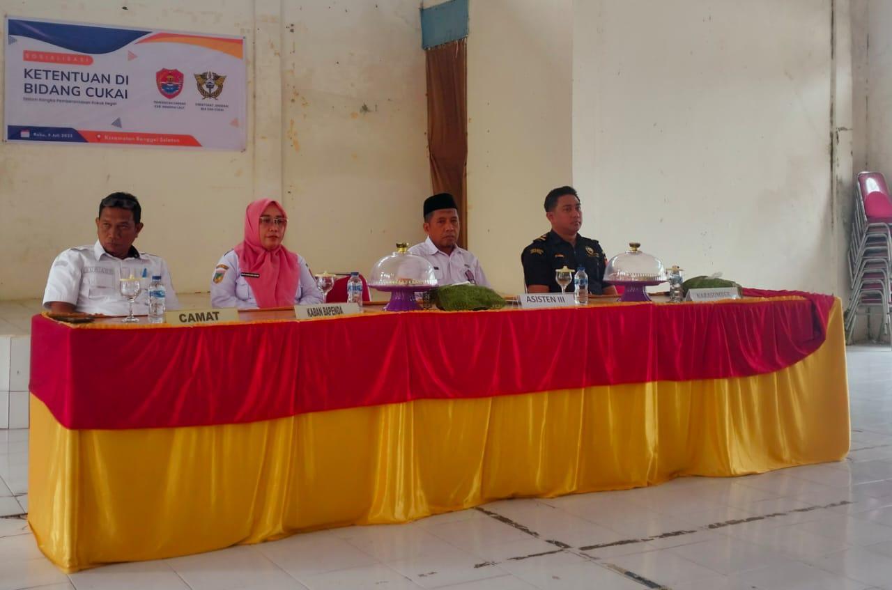 OBORMOTINDOK.CO.ID. Balut– Dalam upaya menekan peredaran rokok ilegal di wilayah Sulawesi Tengah, Bea Cukai Luwuk bersama Pemerintah Daerah (Pemda) Kabupaten Banggai Laut (Balut) mengintensifkan kampanye edukatif melalui kegiatan sosialisasi ketentuan cukai yang dilaksanakan di Aula Kecamatan Banggai Utara, Senin, 7 Juli 2025.
