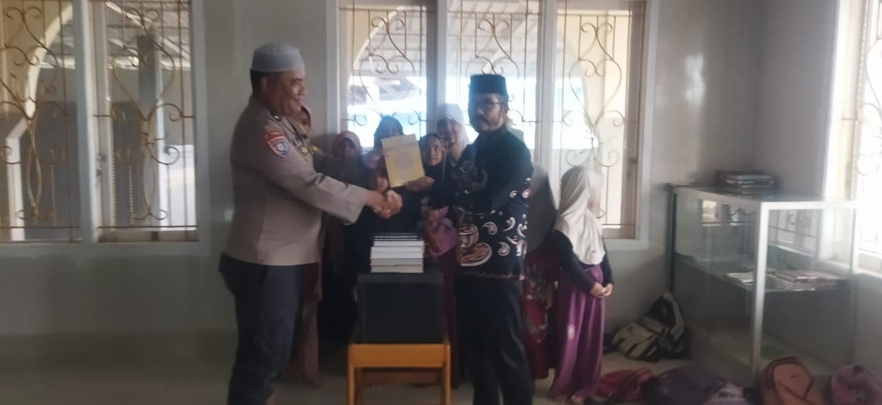 Dalam kegiatan ini, Aipda Zulkifli secara langsung menyerahkan masing-masing 10 mushaf Alquran dan 5 buku Iqra kepada pengurus TPA dan Ponpes.