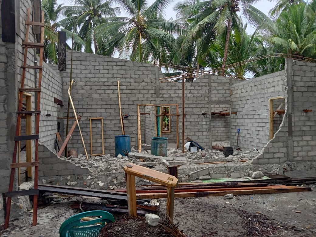 Satu unit rumah yang sedang dibangun mengalami kerusakan pada bagian dinding.