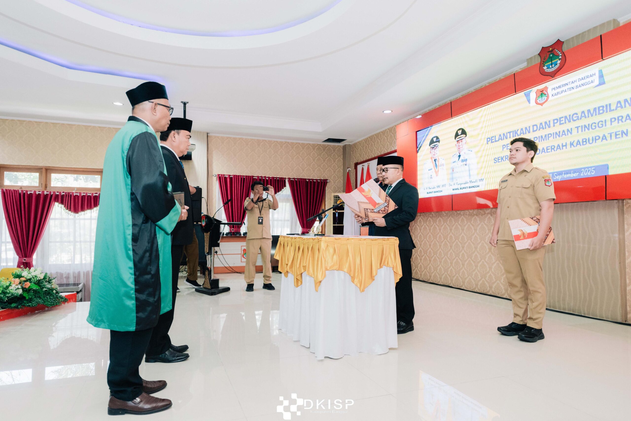 Suasana khidmat terasa saat Bupati Banggai membimbing pengucapan sumpah jabatan yang diikuti oleh Sekda terlantik dengan penuh kesungguhan.