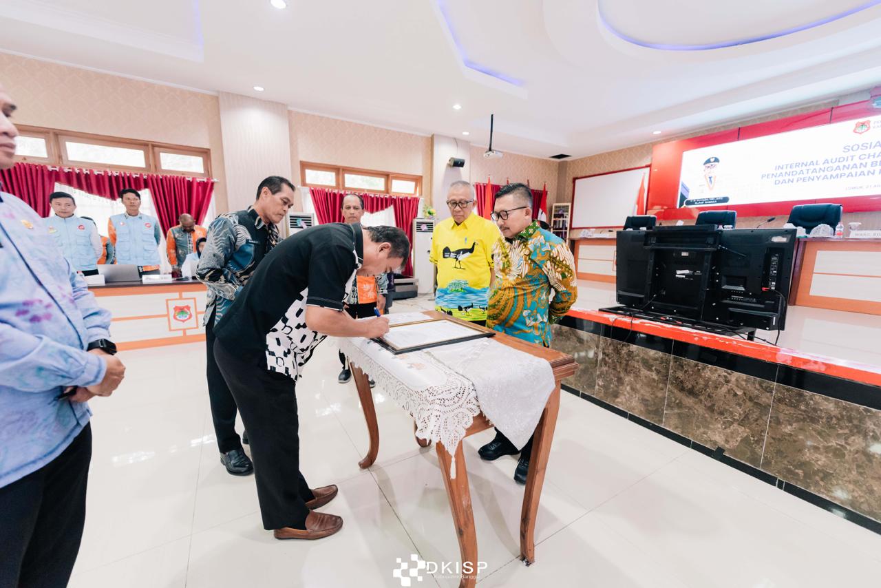OBORMOTINDOK.CO.ID. Banggai– Bupati Banggai, Wakil Bupati Banggai, serta Plt. Sekretaris Daerah menghadiri kegiatan Sosialisasi Anti Korupsi sekaligus penandatanganan Piagam Audit Intern di Ruang Rapat Umum Kantor Bupati Banggai, Kamis (21/8/2025).