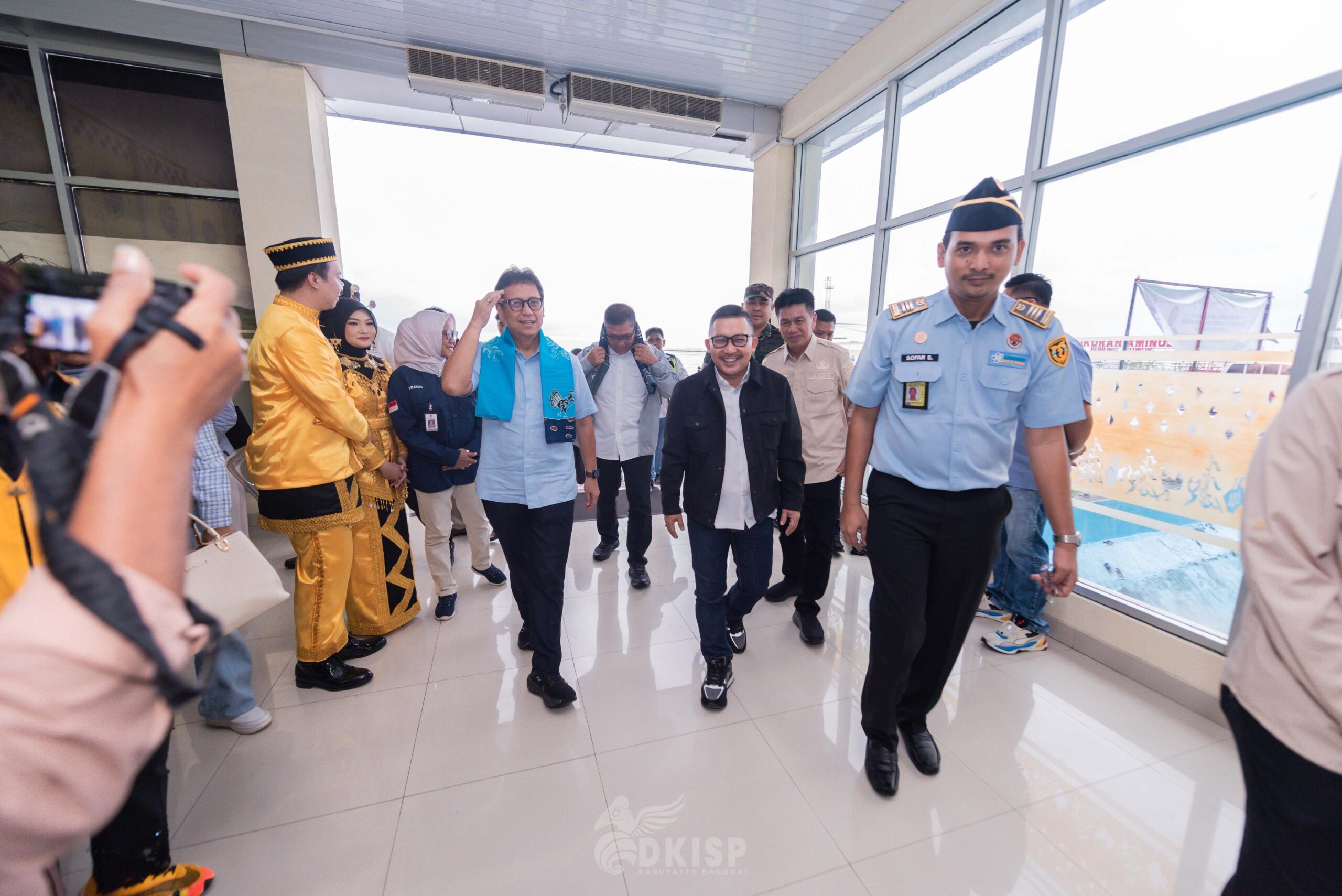 OBORMOTINDOK.CO.ID. Banggai– Bupati Banggai, Ir. H. Amirudin, MM., AIFO bersama Dandim 1308/LB, Letkol Kav. Laode Azhar Hamid, S.H., M.Han, menyambut kedatangan Menteri Kesehatan RI, Budi Gunadi Sadikin, dalam rangka kunjungan kerja ke Kabupaten Taliabu, Provinsi Maluku Utara. Kedatangan Menteri Kesehatan dan rombongan berlangsung di Bandara Syukuran Aminudin Amir Luwuk pada Sabtu (8/3/2025).