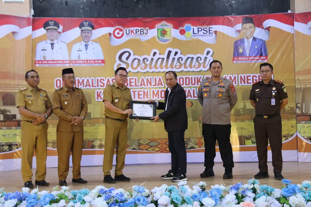 Setelah itu dilanjutkan dengan penyerahan Piagam Penghargaaan dari Gubernur Sulawesi Tengah kepada Bupati Morowali Utara atas komitmen dan implementasi katalog elektronik lokal dalam mendukung Gerakan Nasional Bangga Buatan Indonesia di Provinsi Sulawesi Tengah.