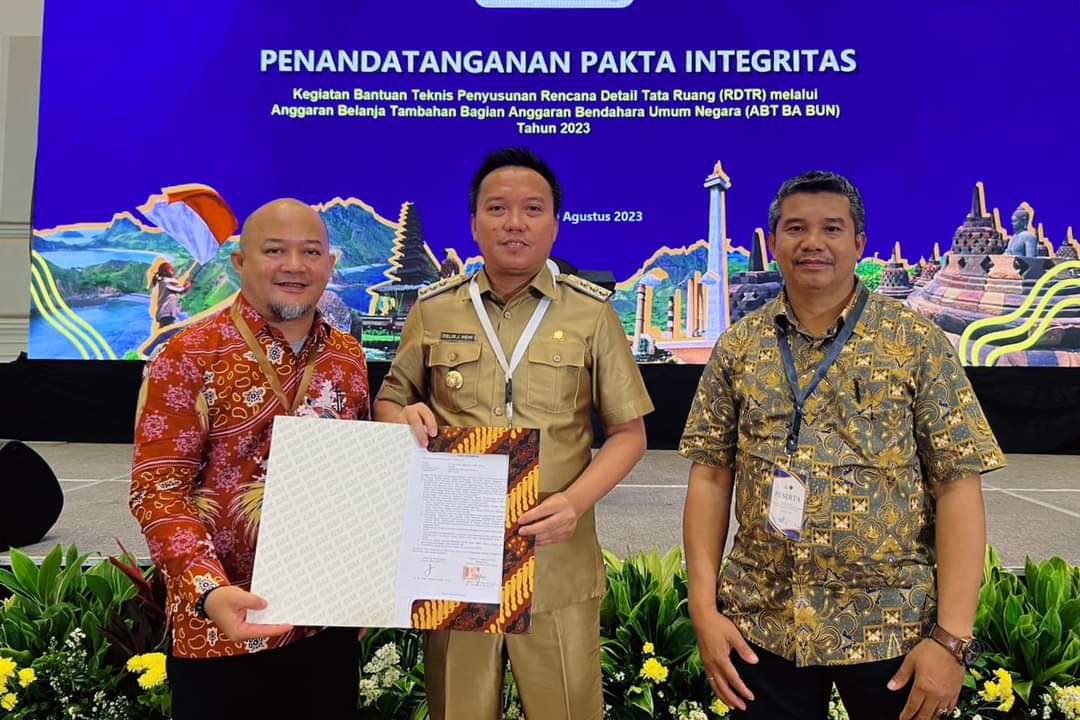 Penandatanganan Pakta Integritas dalam Rakor Kegiatan Bantuan Teknis Penyusunan Rencana Detail Tata Ruang (RDTR) dilakukan di The Tribrata Darmawangsa, Jakarta Selatan pada tanggal 9 Agustus.