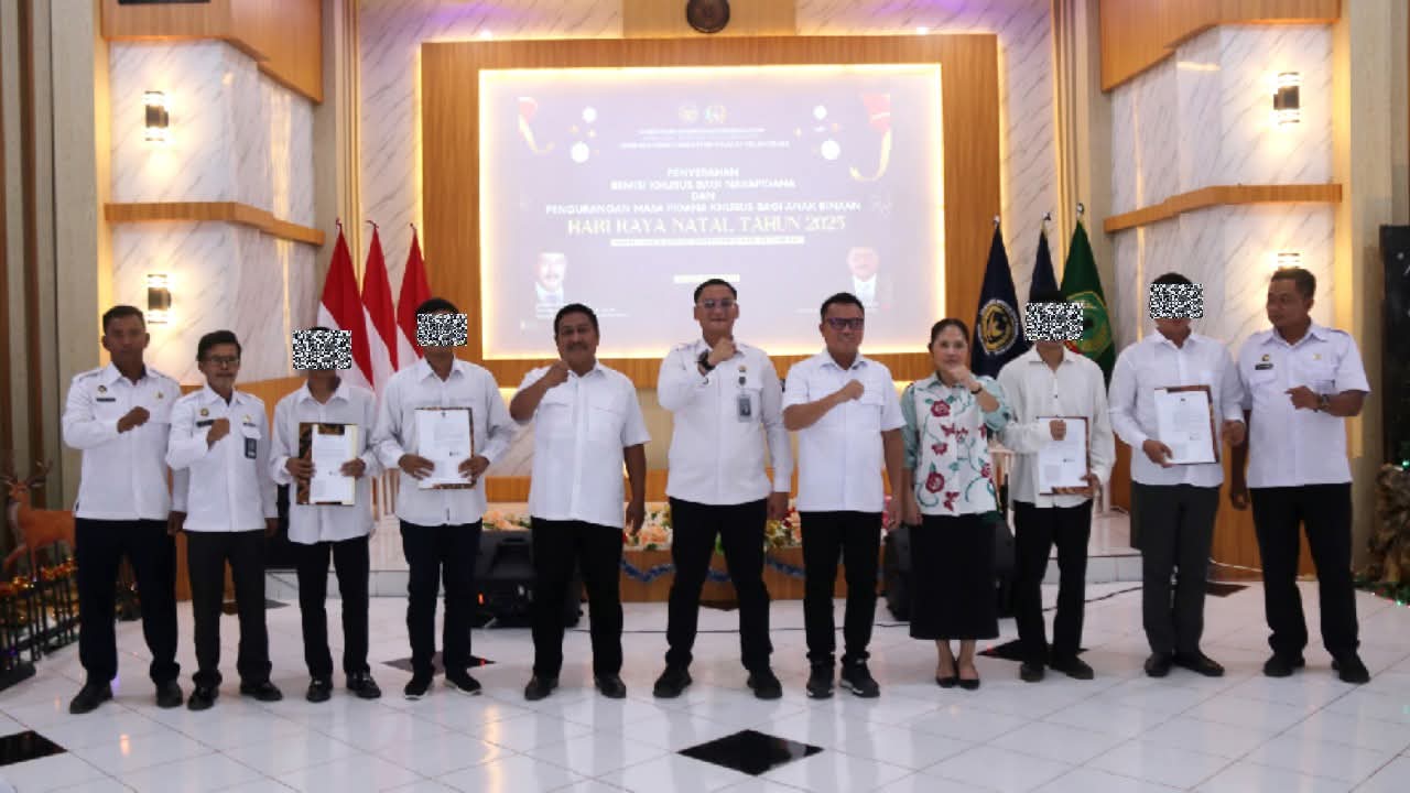 Penyerahan remisi berlangsung di Aula Kantor Lapas Kelas III Kolonodale, Kamis (25/12/2025). Bupati Morowali Utara, Dr. dr. Delis Julkarson Hehi, MARS, bersama Kepala Lapas Kelas III Kolonodale, Bambang Hari Widodo, secara langsung menyerahkan remisi kepada 28 warga binaan.