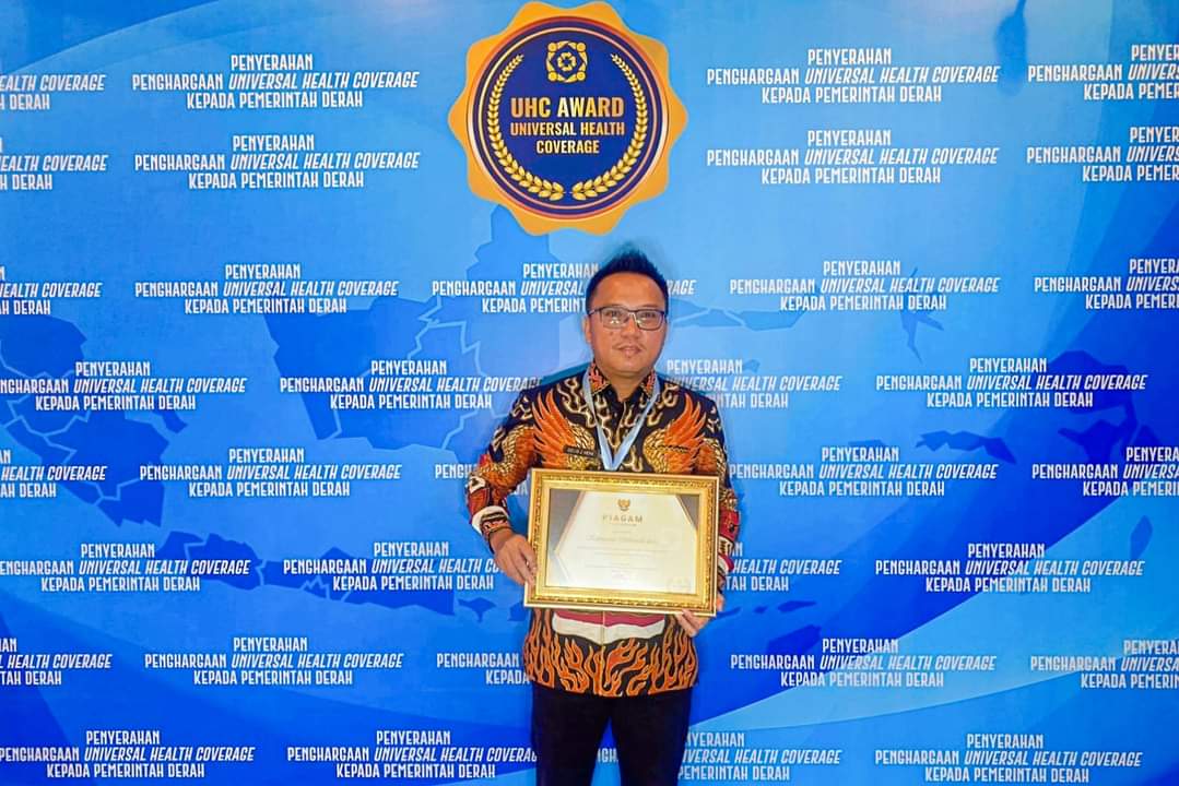 Dalam penerimaan UHC Award ini, Bupati Morut didampingi Kepala BPJS Kesehatan Morut, Zadly.