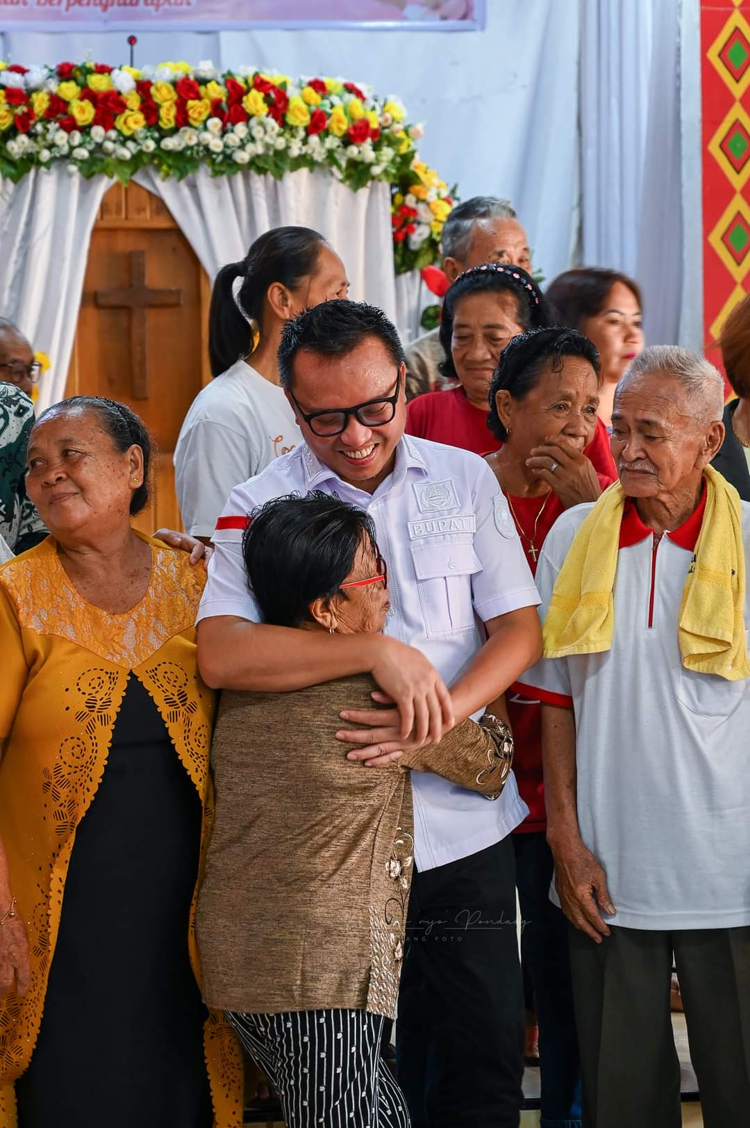 Dalam sambutannya, Bupati Delis menyatakan rasa syukur bisa bertemu dengan para lansia dalam suasana penuh sukacita. “Kita patut bersukacita karena orang-orang tua kita tetap sehat dan bersemangat. Saya selalu mengatakan bahwa saya bisa sampai di titik ini karena cinta kasih orang tua. Karena itu patutlah kita bersyukur,” ujarnya.