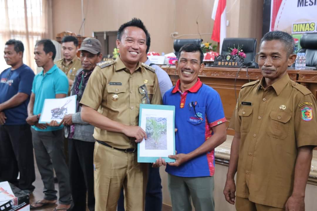 OBORMOTINDOK.CO.ID. MORUT- Morowali Utara, Bupati Morowali Utara Dr. dr. Delis Julkarson Hehi, MARS, menyerahkan bantuan alat dan mesin pertanian (alsintan), pupuk organik dan bibit sawit kepada Kelompok Tani Kabupaten Morowali Utara bertempat di Ruang Pola Kantor Bupati, senin (07/08/2023).