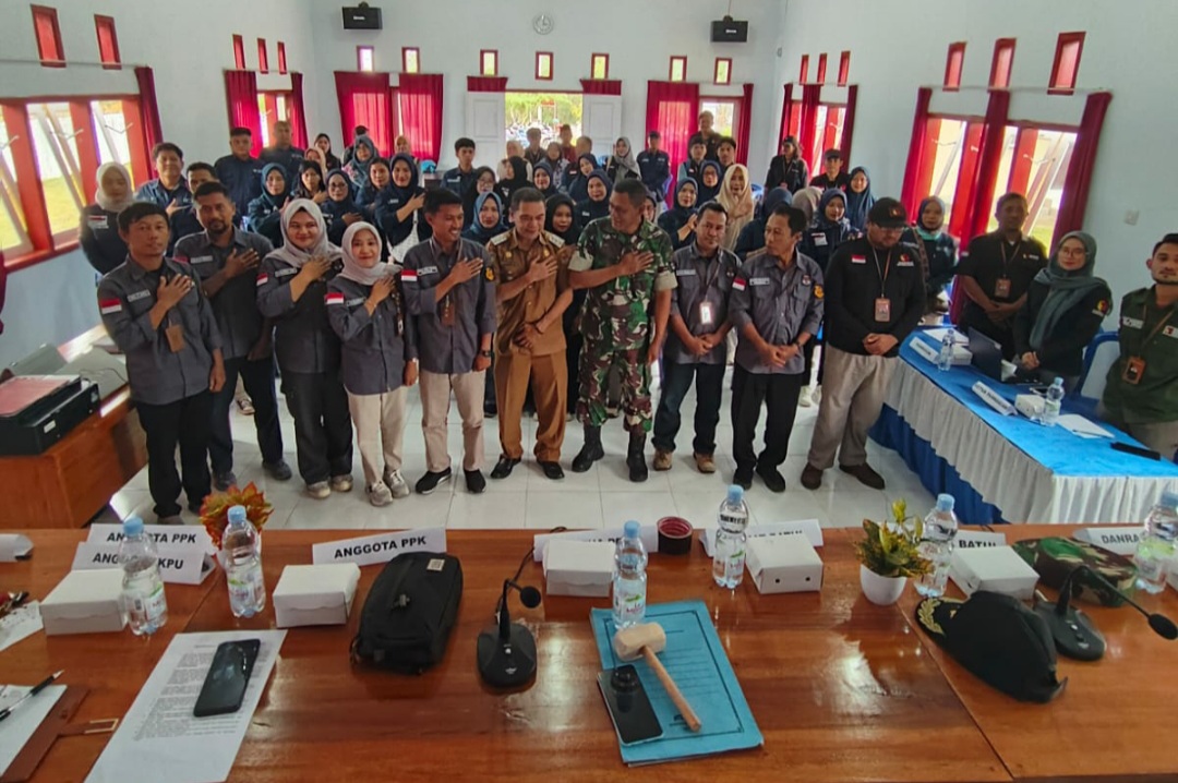 Sambutan pertama disampaikan oleh Camat Batui, Muslih B. Ading, yang mengapresiasi seluruh pihak yang telah berpartisipasi dalam mensukseskan tahapan ini. Ia mengajak semua pihak untuk terus berkolaborasi hingga hari pemungutan suara.