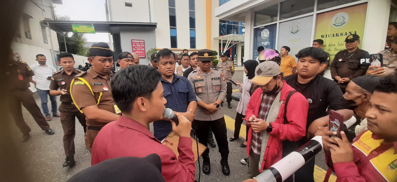 Usai perwakilan Fraksi menyerahkan dokumen pengaduan kepada Kejaksaan Negeri Banggai, yang diterima langsung oleh Kasi Intel Kejari Banggai, Firman Wahyudi, puluhan masa aksi langsung menuju Kantor Inspektorat Kabupaten Banggai, Kantor Bupati Banggai dan Mapolres Banggai.