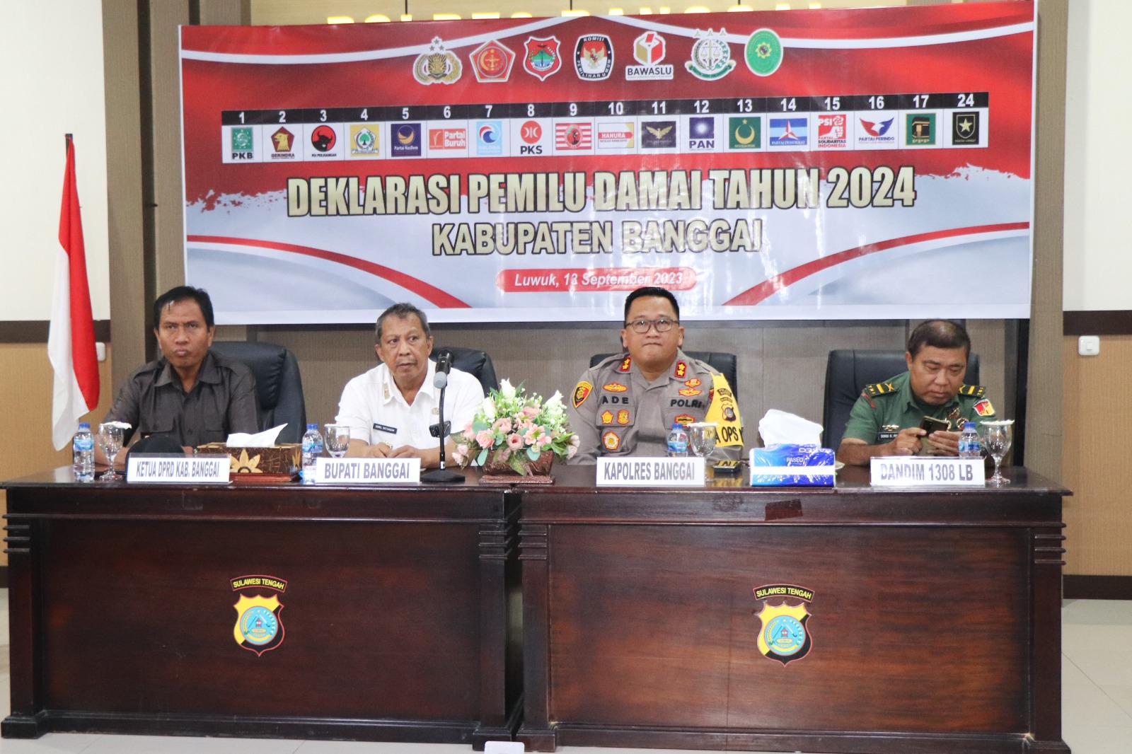 Sebelum menutup kegiatan tersebut, Kapolres Banggai beserta seluruh pimpinan dan perwakilan partai politik, KPUD, Bawaslu dan juga unsur Forkopimda membacakan Deklarasi Pemilu Damai dan penandatanganan bersama kesepakatan Deklarasi Pemilu Damai. (**)
