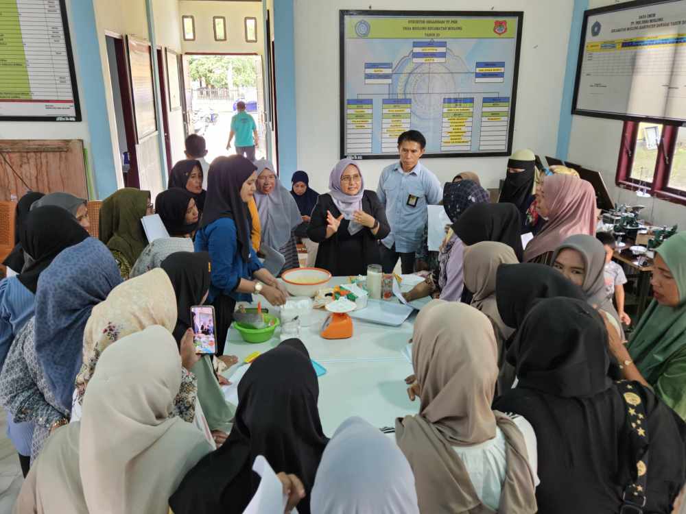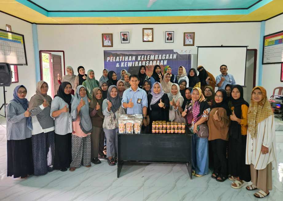 Selain itu, peserta juga dibekali keterampilan kewirausahaan praktis, seperti pengembangan ide bisnis, manajemen keuangan, strategi pemasaran, pelayanan pelanggan, dan pengelolaan risiko usaha. Untuk memperkuat implementasi materi, peserta langsung mempraktikkan pembuatan dua produk olahan lokal berbasis potensi desa, yakni amplang ikan dan sambal ikan.