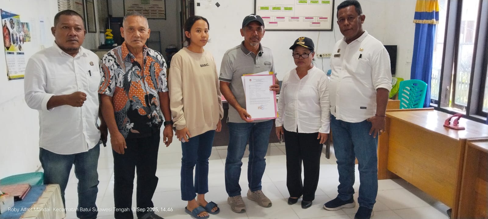 Penandatanganan surat tersebut disaksikan langsung oleh. Sekcam Batui, Ambodale. Kasipem Kecamatan Batui, Moh. Ikaf, Samiun, Anggota DPRD Sulteng dan Enjel Samauling, kakak dari penerima beasiswa.