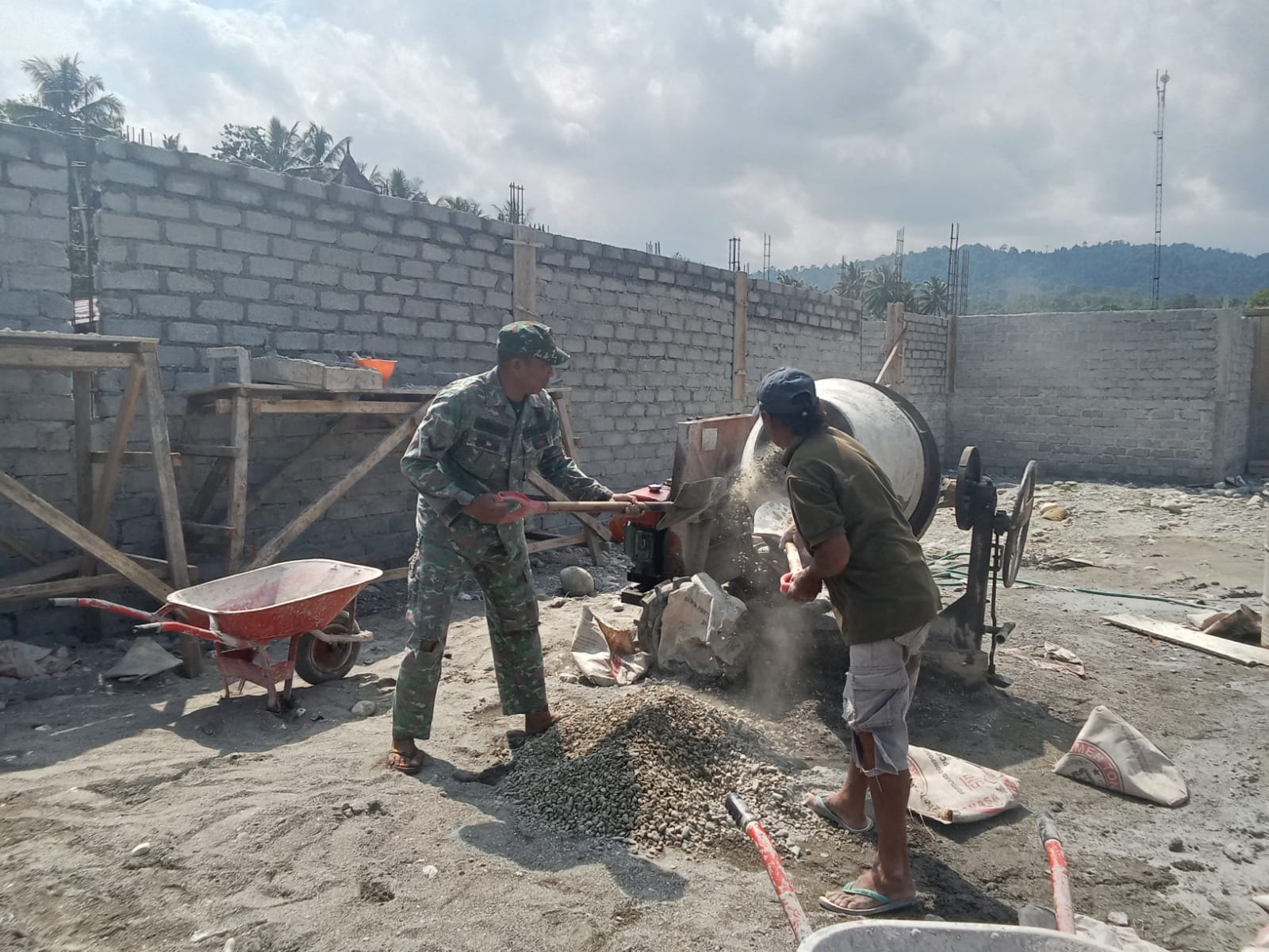 Dalam proses pembangunan, Serka Musliadi bersinergi dengan para pekerja untuk mempercepat penyelesaian fisik bangunan. Nantinya, gerai KMP tersebut akan difungsikan sebagai pusat distribusi bahan pangan pokok sekaligus apotek desa yang dapat diakses masyarakat setempat.