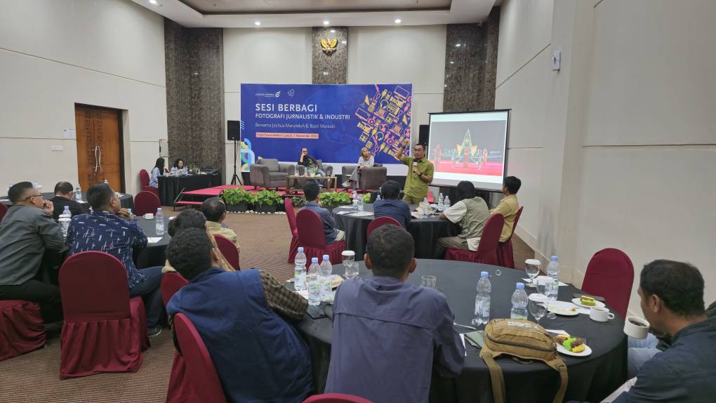 Sedangkan Josua Marunduh, yang juga merupakan kontributor foto bagi National Geographic Indonesia, membagikan berbagai trik dalam memotret dan menangkap momen di dunia industri.
