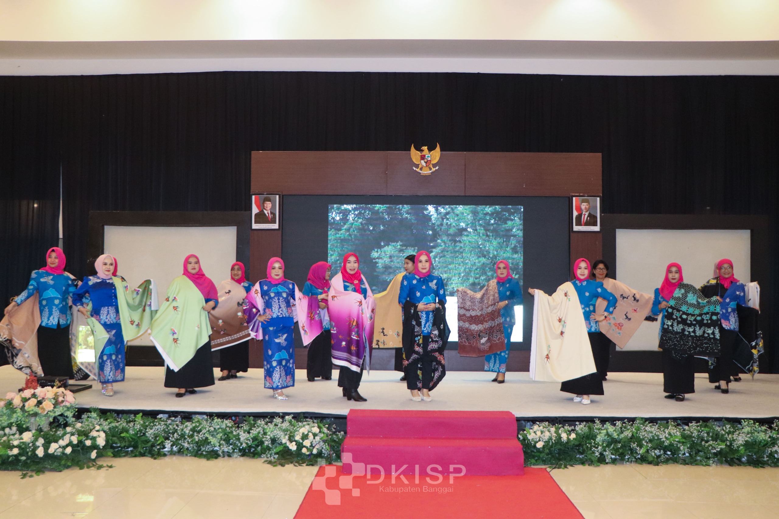 Menariknya, pengurus DWP Kabupaten Banggai tampil memukau dengan busana batik bermotif burung maleo, simbol kearifan lokal khas Banggai yang sarat makna dan keindahan.