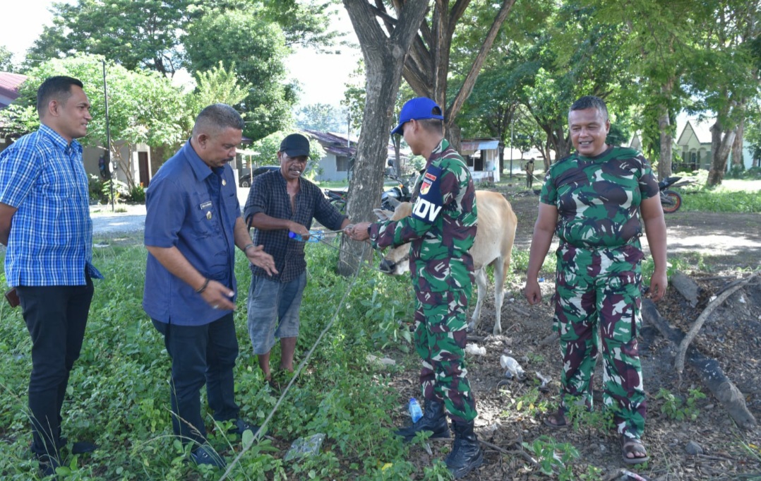 Hewan kurban tersebut diterima secara simbolis oleh Dankima Lettu Yudi.