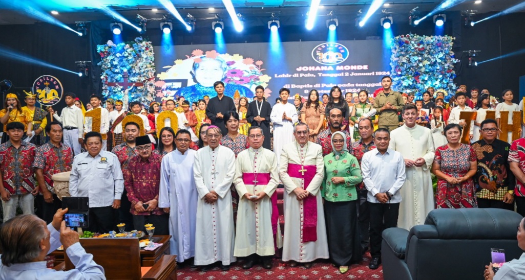 OBORMOTINDOK.CO.ID. Palu – Gubernur Sulawesi Tengah, H. Rusdy Mastura, yang diwakili oleh Sekretaris Provinsi (Sekprov) Novalina Wismadewa, menghadiri perayaan Yubelium 100 Tahun Baptisan Katolik Pertama di Palu. Acara tersebut digelar di Merry Glow Palu pada Minggu (15/9).