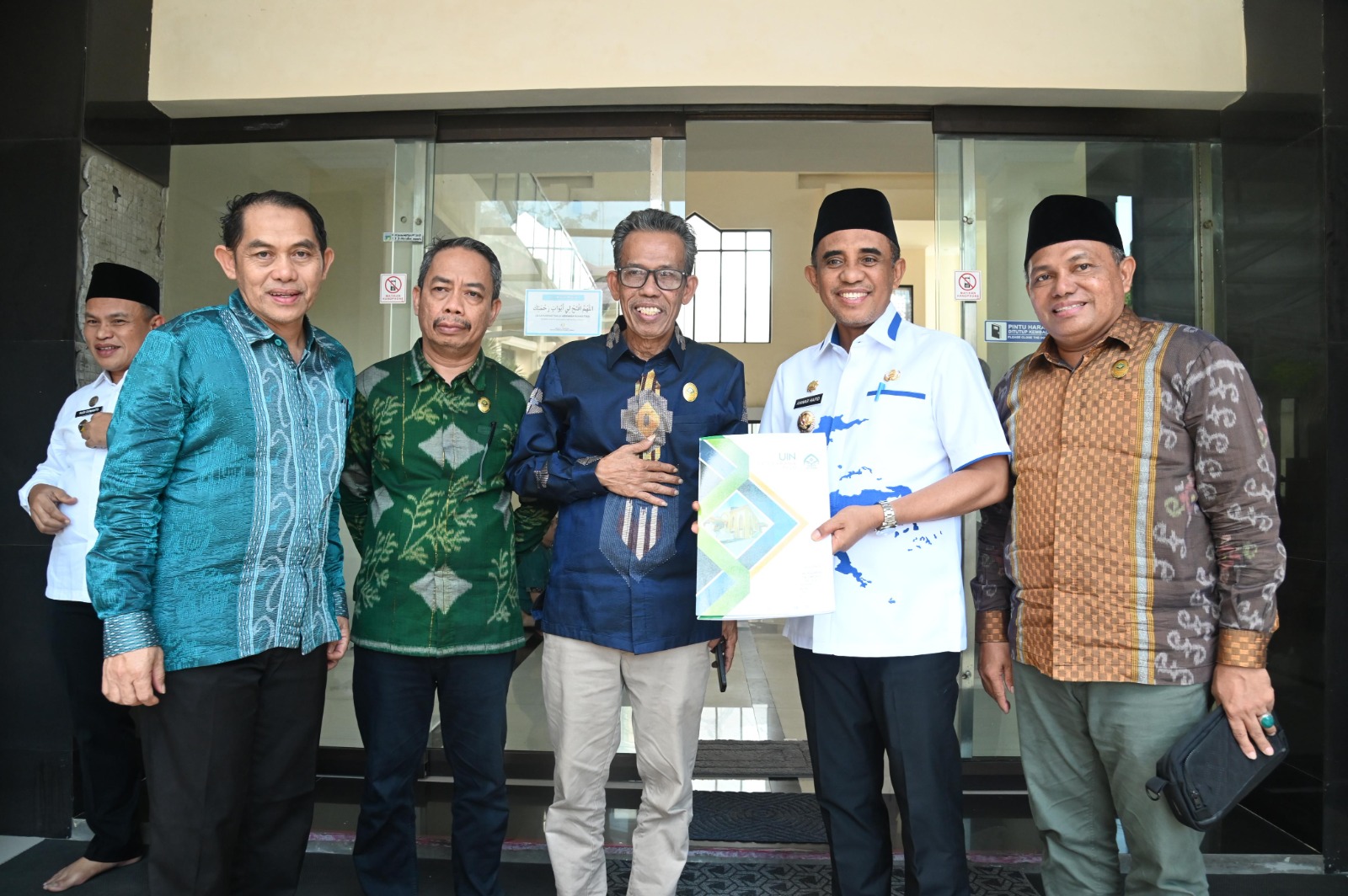 Dalam kesempatan tersebut, Rektor didampingi sejumlah pimpinan UIN Datokarama, antara lain Wakil Rektor Bidang Akademik Dr. Hamka, Wakil Rektor Bidang AUPK Prof. Hamlan, Wakil Rektor Bidang Kemahasiswaan Dr. Faisal Attamimi, Ketua LPM Dr. Sofyan Bachmid, dan Kabag Umum Raodhah. **