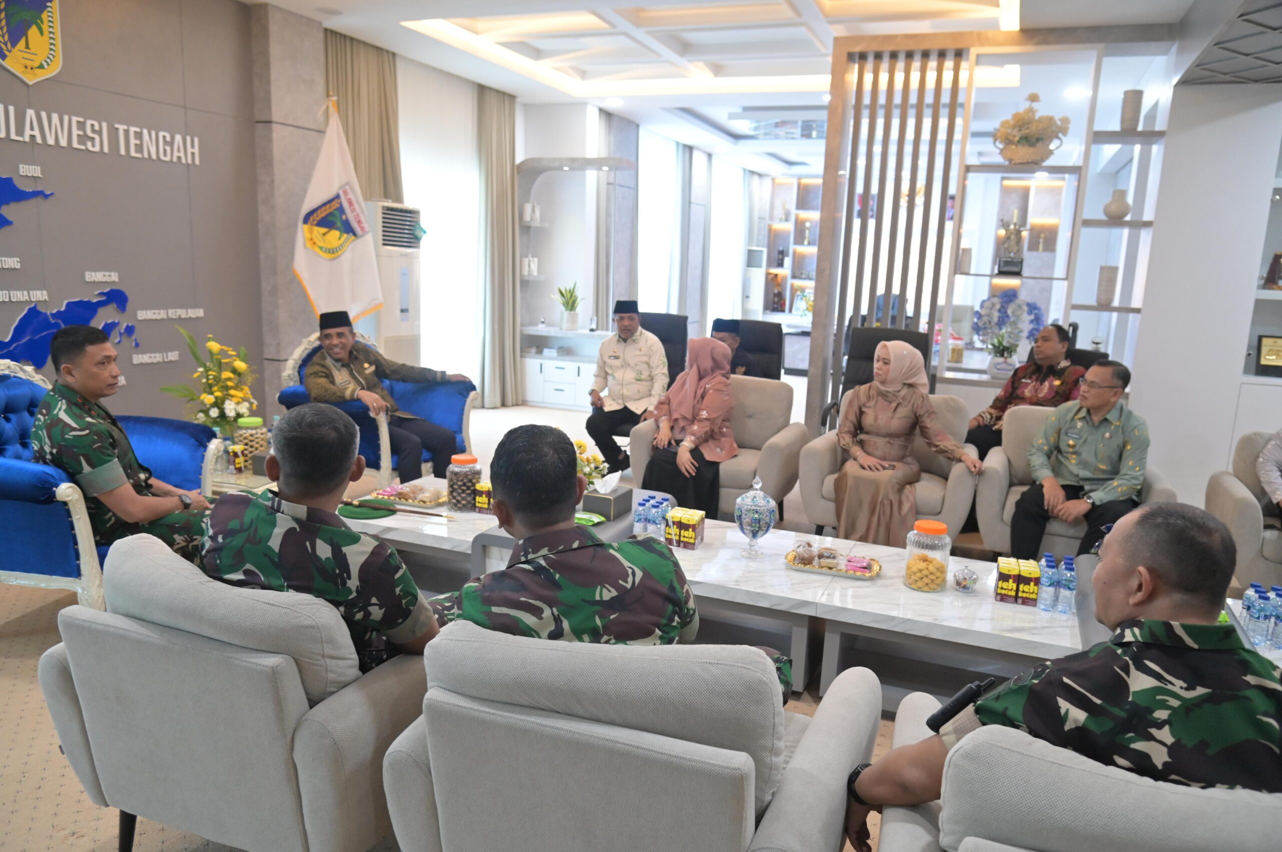 OBORMOTINDOK.CO.ID. Palu– Gubernur Sulawesi Tengah Dr.H.Anwar Hafid,M.Si menerima kunjungan silaturahmi Panglima Komando Daerah Militer (Pangdam) XXIII/Palaka Wira Mayjen TNI Jonathan Binsar Parluhutan Sianipar beserta jajaran di ruang kerjanya, Kamis (4/9/2025).