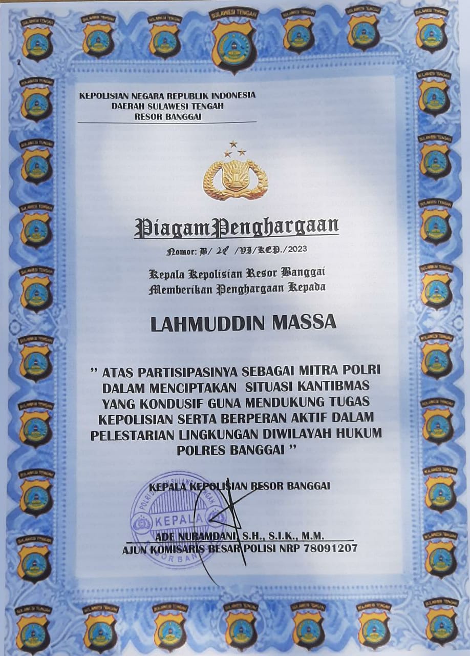 Pemberian piagam penghargaan tersebut, sebagai bentuk apresiasi Polres Banggai terhadap organisasi yang selama ini membantu menjaga Kamtibmas yang kondusif guna mendukung tugas kepolisian serta berperan aktif serta berperan aktif dalam pelestarian lingkungan di wilayah hukum Polres Banggai.