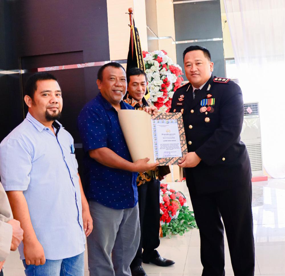 OBORMOTINDOK.CO.ID. Luwuk-Dimomentum HUT ke -77 Bhayangkara, Kapolres Banggai AKBP. Ade Nuramdani, SH.,SIK.,MM, memberikan piagam penghargaan kepada sejumlah pihak salah satunya Ketua LSM GAM Kabupaten Banggai, Lahmudin Massa, bertempat di Aula Maleo Mapolres Banggai, Sabtu 1 Juli 2023.