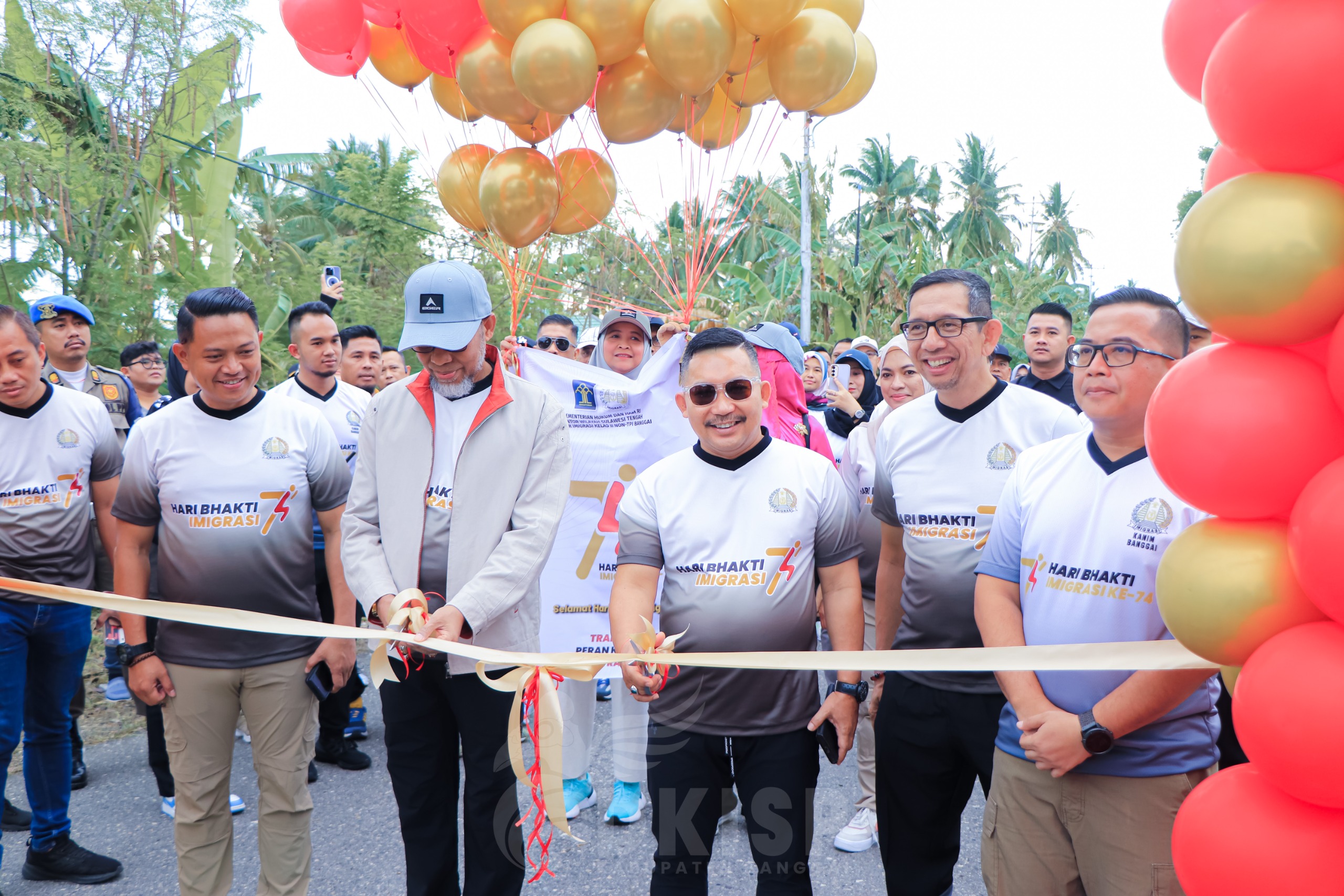 OBORMONTINDOK.CO.ID, LUWUK- Inspektur Jenderal (Irjen) Kementrian Hukum dan HAM, Razilu ikut berpartisipasi di agenda fun walk atau jalan santai kemeriahan perayaan Hari Bhakti Imigrasi ke 74. Bupati Banggai, Amirudin membuka sekaligus mengikuti jalan santai yang diselenggarakan Kantor Imigrasi Kelas II Non TPI Banggai, Minggu (21/1/2024) pagi. Kegiatan ini merupakan rangkaian perayaan Hari Bhakti Imigrasi Ke-74.