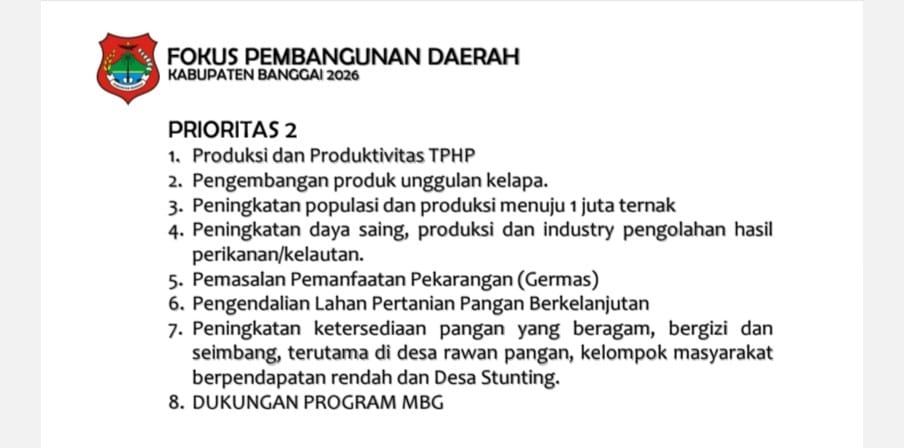 Arah kebijakan Pemkab Banggai sudah dituangkan dalam sejumlah langkah prioritas yang disampaikan dalam pertemuan tersebut.