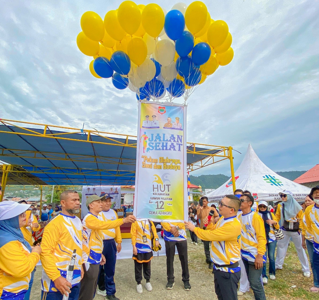 “Alhamdulillah, kita baru saja melaksanakan Jalan Sehat bersama. Semoga acara ini membawa manfaat besar bagi kesehatan kita semua. Selamat Hari Ulang Tahun Kecamatan Luwuk Selatan,” ucap Bupati Amirudin.