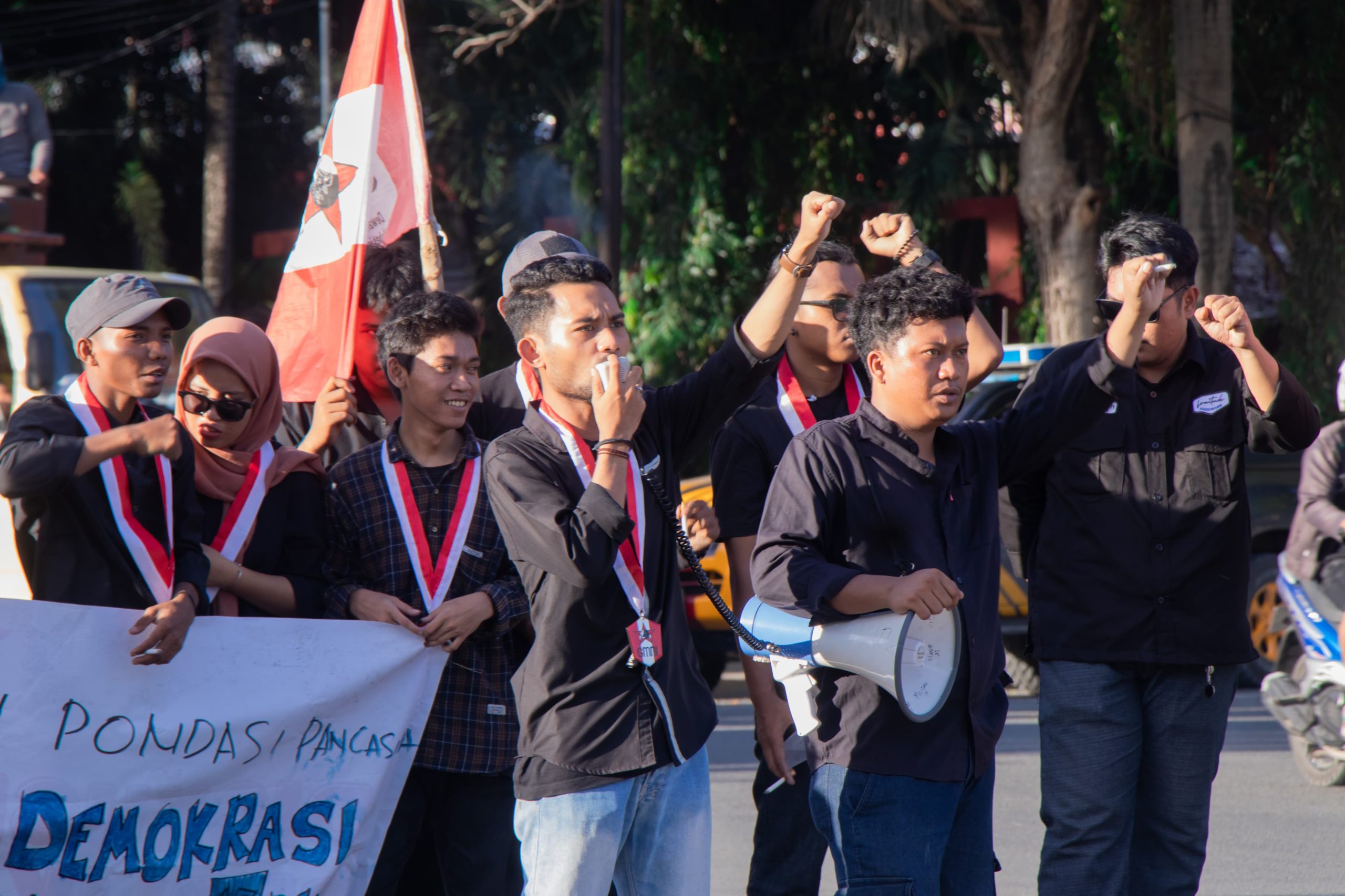 Tak hanya melakukan orasi, DPC GMNI Luwuk Banggai juga menyatakan sikap dan menuntut beberapa isu HAM dan demokrasi di Indonesia.