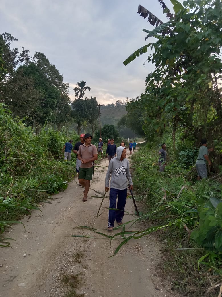 Kegiatan kerja bakti tersebut dengan memaras di sepanjang ruas kiri dan kanan badan jalan yang menghubungkan Desa Tiwaa dan Desa Tamunjengi serta meratakan spot-spot jalan yang berlubang.