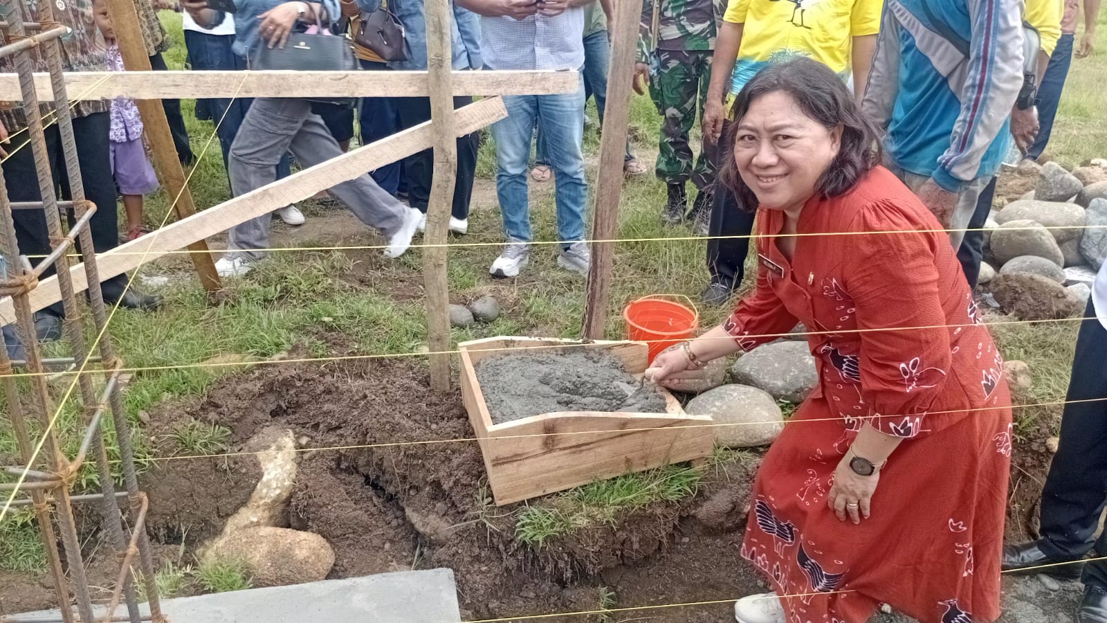 OBORMOTINDOK.CO.ID. Banggai– Kepala Dinas Koperasi, Usaha Mikro Kecil dan Menengah (KUMKM) Kabupaten Banggai, Helena Agustina Padeatu, menghadiri acara peletakan batu pertama pembangunan Gerai Koperasi Merah Putih (KMP) di Desa Maleo Jaya, Kecamatan Batui Selatan, Kabupaten Banggai, Kamis pagi (8/1/2026).