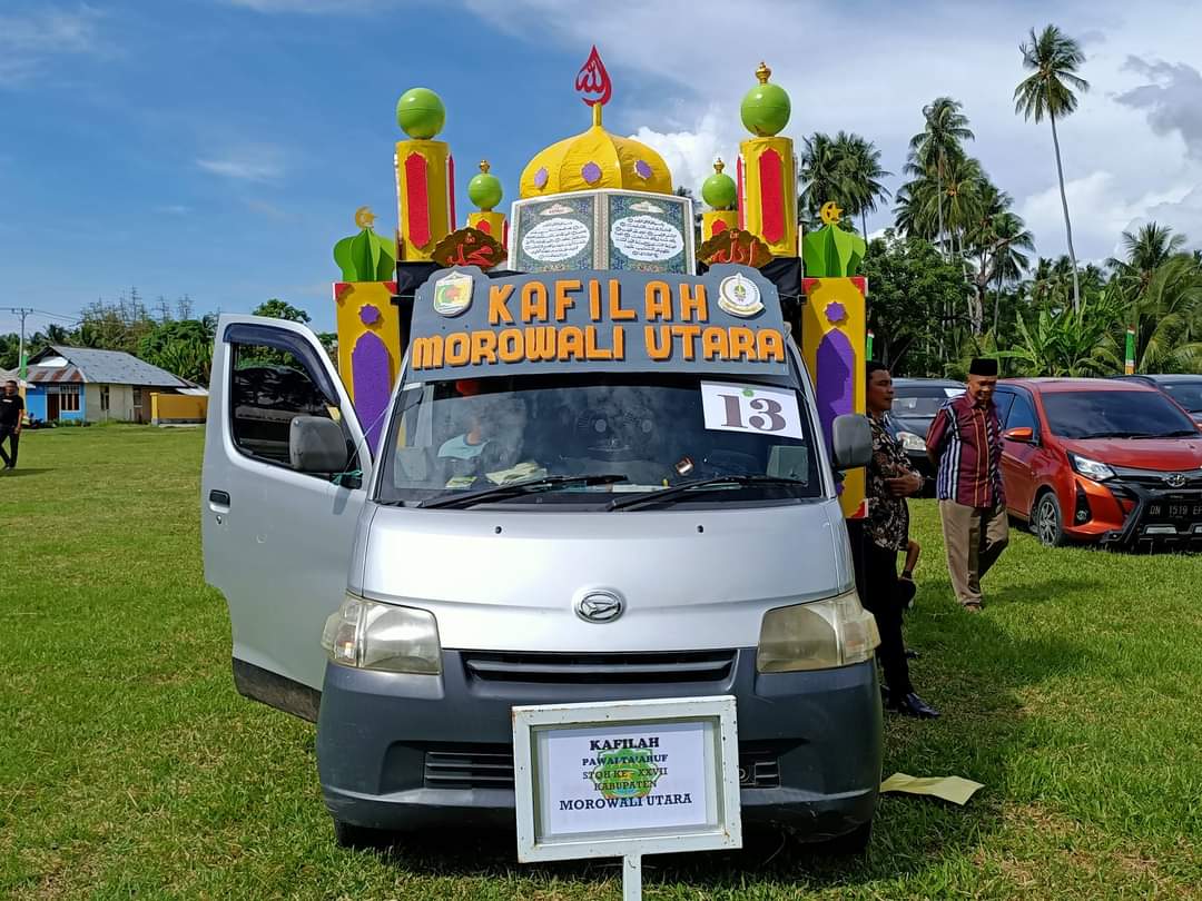 Kafilah Morowali Utara menampilkan miniatur Mesjid, start dari Lapangan Malotong pada pukul 14.00 Wita dan Finish Pawai Taaruf di Arena Utama STQH XXVII Kompleks Kantor Bupati Tojo Una-Una pada pukul 16.00 Wita.