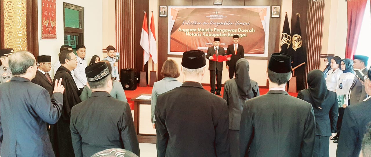 Pelantikan Majelis Pengawas Notaris Kabupaten Banggai, terdiri dari 9 orang unsur perwakilan Pemerintah, Akademisi dan Notaris.