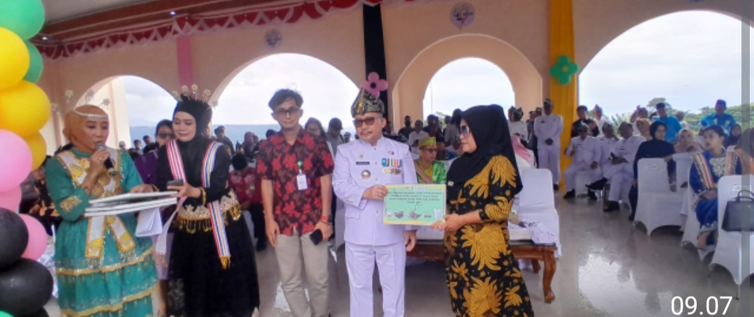 Leni Hinelo, Goverment Relation PT PAU, menerima piagam penghargaan tersebut saat acara berlangsung di Lapangan Tribun Mirqan Halimun Luwuk pada Senin, 08 Juli 2024.