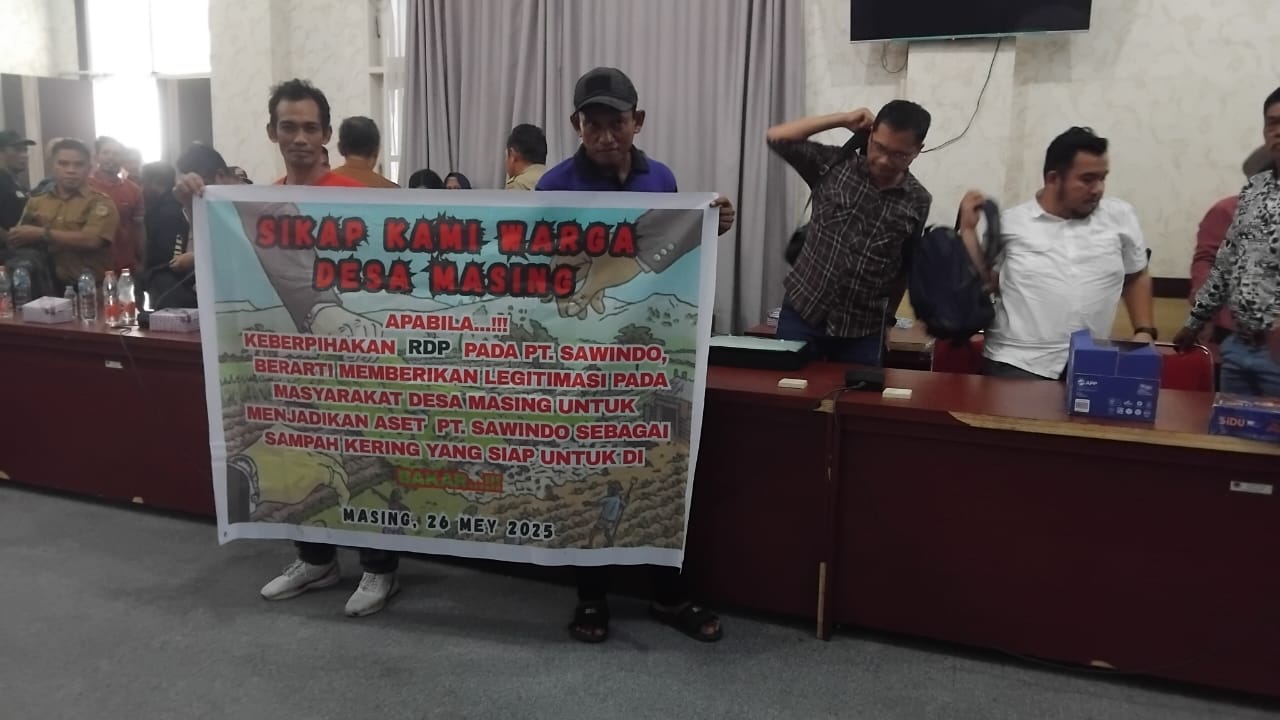 Menariknya, usai rapat digelar, warga memberikan sebuah “hadiah” kepada perwakilan manajemen PT Sawindo Cemerlang. Hadiah tersebut berupa spanduk besar bertuliskan kekecewaan, yang dibentangkan di hadapan pihak perusahaan.