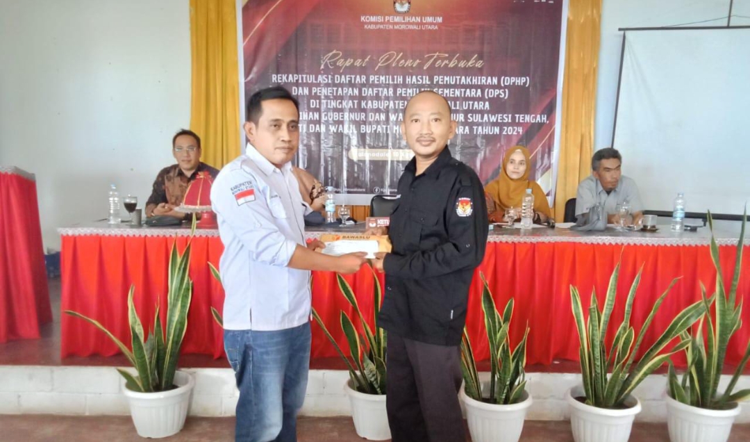 OBORMOTINDOK.CO.ID. Morut- Komisi Pemilihan Umum (KPU) Kabupaten Morowali Utara, (Morut), telah menggelar Rapat Pleno Terbuka Rekapitulasi dan Penetapan Daftar Pemilih Sementara (DPS) tingkat Kabupaten untuk Pemilihan Gubernur, Wakil Gubernur, Bupati, dan Wakil Bupati tahun 2024. Acara ini berlangsung pada Sabtu (10/8) di Hotel Bougainville.