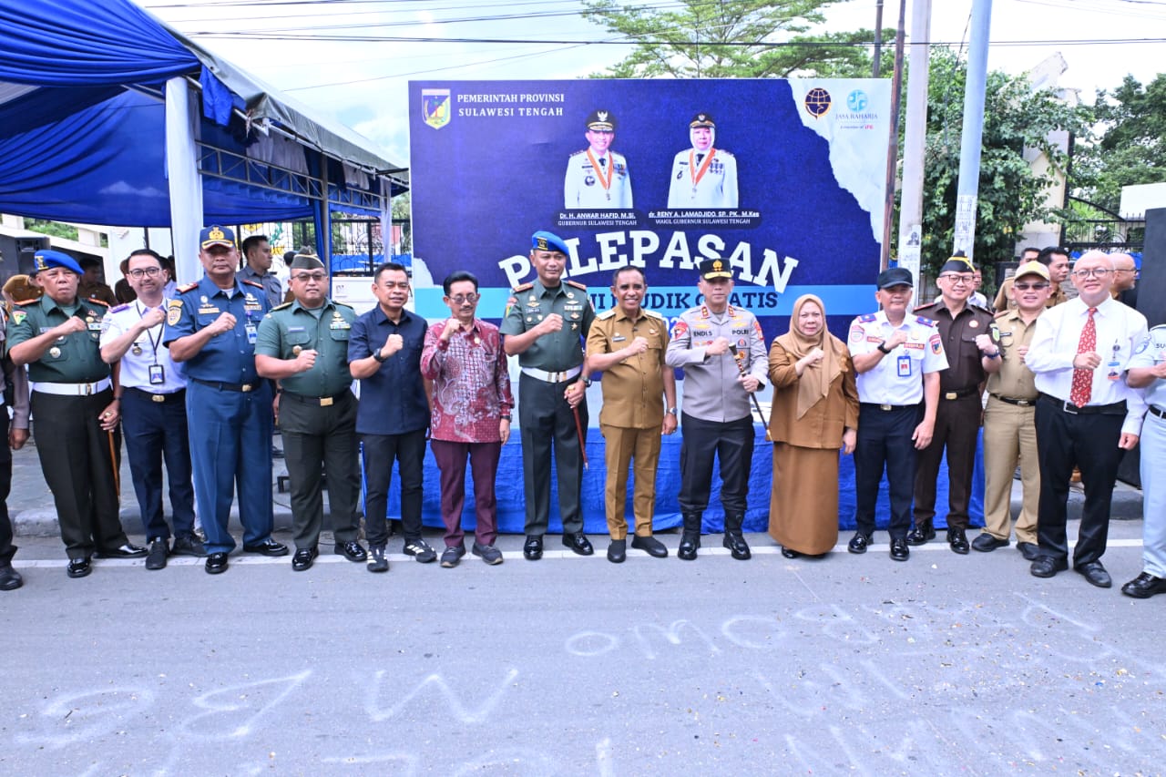 OBORMOTINDOK.CO.ID. Palu– Gubernur Sulteng Dr. H. Anwar Hafid, M.Si secara resmi melepas peserta Program Berani Mudik Gratis di depan Kantor Gubernur Sulawesi Tengah, Senin (22/12).