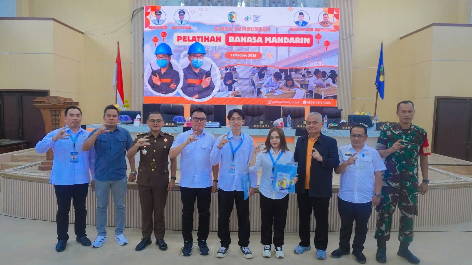 OBORMOTINDOK.CO.ID. Morut– Bupati Morowali Utara, Dr. dr. Delis Julkarson Hehi, MARS, secara resmi membuka Pelatihan Bahasa Mandarin di Ruang Pola Kantor Bupati, Rabu (1/10/2025).