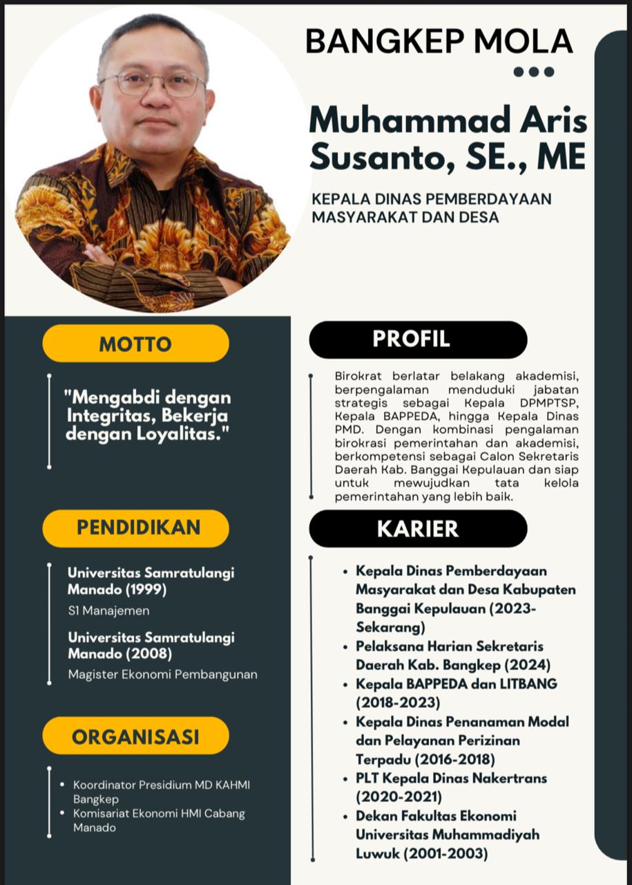 Sosok Muhammad Aris Susanto sendiri dikenal sebagai figur yang muda bergaul, memiliki rekam jejak mumpuni di bidang pemerintahan dan manajemen publik. Dengan latar belakang pendidikan ekonomi, ia dinilai memiliki kapasitas dan visi yang kuat untuk mendukung kinerja pemerintahan Kabupaten Banggai Kepulauan ke depan.