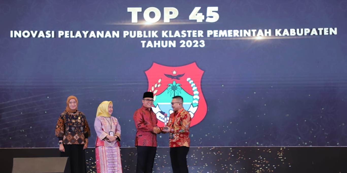 Menteri PANRB Abdullah Azwar Anas didampingi Deputi Bidang Pelayanan Publik Kementerian PANRB Diah Natalisa memberikan secara langsung penghargaan Top 45 Inovasi Pelayanan Publik Tahun 2023 kepada Bupati Amirudin pada kegiatan tersebut.