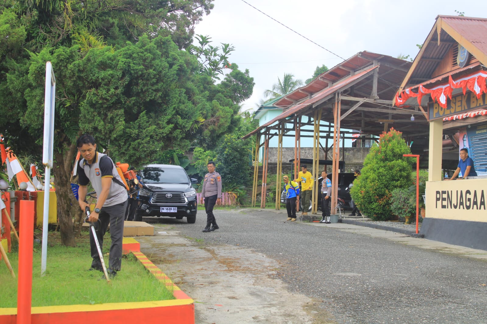 OBORMOTINDOK.CO.ID. Banggai- Dalam upaya menciptakan lingkungan yang bersih dan nyaman, Pemerintah Desa (Pemdes) Uso bersama jajaran Kepolisian Sektor (Polsek) Batui melaksanakan kegiatan gotong royong membersihkan halaman Kantor Mapolsek Batui, Kamis (28/8/2025) pagi.