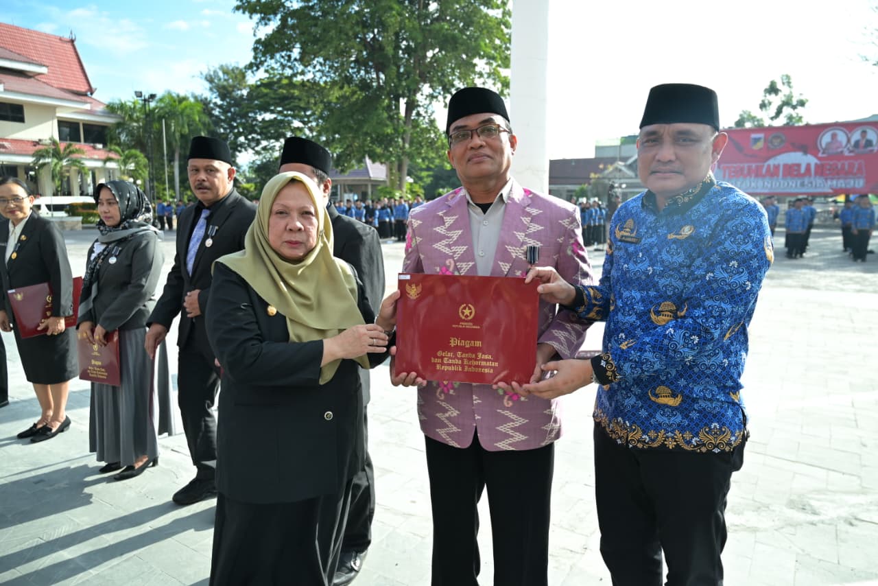 Sebagai bagian dari peringatan Hari Bela Negara ke-77, turut dilaksanakan penyerahan Penghargaan Tanda Kehormatan Satyalancana Karya Satya kepada Enam Aparatur Sipil Negara (ASN) atas masa pengabdian masing-masing selama 30 tahun, 20 tahun, dan 10 tahun. Penghargaan tersebut diserahkan oleh Wakil Gubernur bersama Asisten Administrasi Umum, M. Sadly Lesnusa, S.Sos., M.Si. kepada para penerima.**