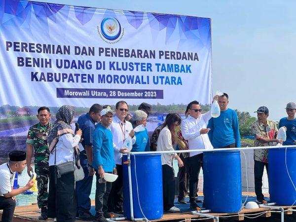 OBORMOTINDOK.CO.ID, MORUT- Bupati Morowali Utara, Dr. dr. Delis Julkarson Hehi, MARS meresmikan kluster tambak sekaligus melakukan penebaran perdana benih udang di Desa Ungkea, Kamis (28/12/2023) pagi.