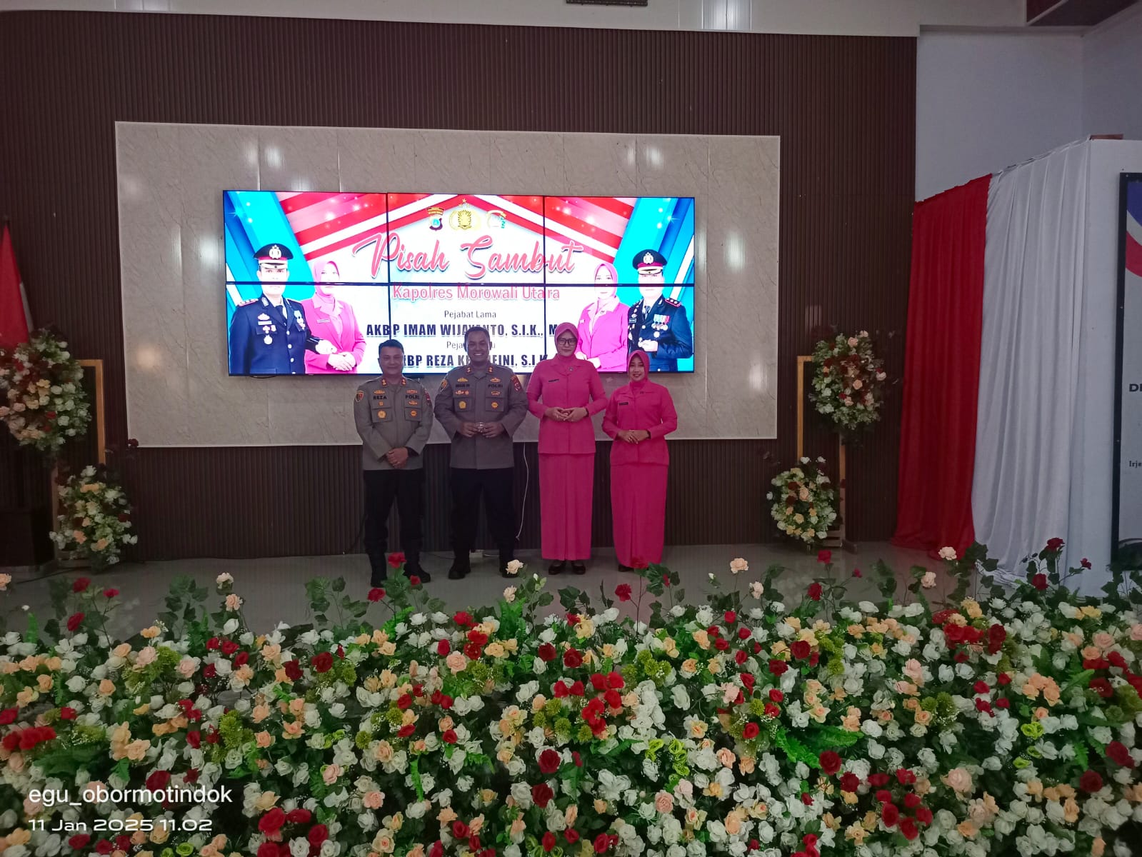 OBORMOTINDOK.CO.ID. Morut– Polres Morowali Utara menggelar acara pisah sambut Kapolres dari AKBP Imam Wijayanto, S.I.K., M.H., kepada Kapolres baru, AKBP Reza Khomeini, S.I.K., pada Sabtu (11/01) di Aula Polres Morowali Utara.